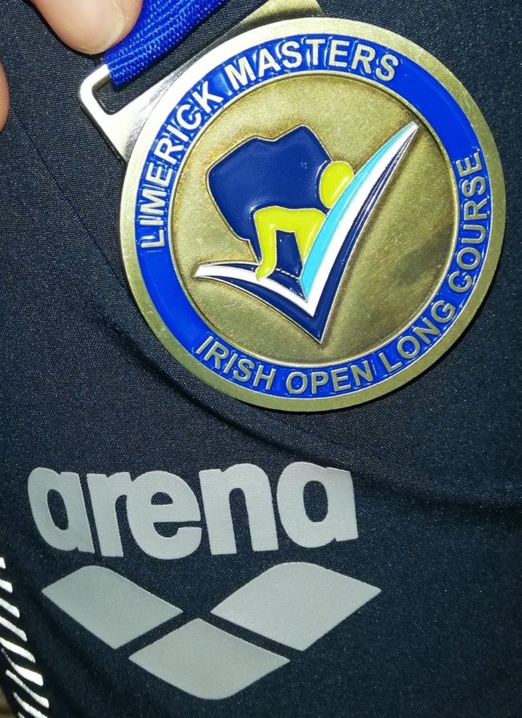 My final race was the 50m free. Way back in 2017 at the world masters in Budapest I hoped to break the 27 second mark in this event. It didn’t happen and I figured I had simply hit my limit in terms of speed unless I dedicated myself to sprinting and hit the gym hard. This year with the change in my training and the improvements I’ve made in my dives I started contemplating doing it again. I came very close to breaking it last year at a short course gala and only missed it because I mistimed a breakout. In the Celtic Masters gala in December I broke it short course, so I made breaking it long course one of my goals for the year. The race itself went well, I got a great start, I was aiming for 2 breaths in the 50, but felt a little caught up on the second breath so sneaked in a third. I thought that would have cost me, but I was delighted to look up at the board and see that I had just slipped under the 27 seconds. I honestly can’t remember what I used to do for the 50 free back in my age group days, all I know is that I never raced it long course because we didn’t have a long course pool in Ireland back then. So, I’m taking this as a lifetime long course PB and I picked up gold in this event too.