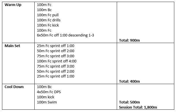 The usual disclaimers apply, this is a set I swim, you are free to try it yourself but do so at your own risk etc. I also have to point out again that this is not a set I wrote, I’m not sure who the original author is I just found it among handouts I was given in coaching courses/workshops.