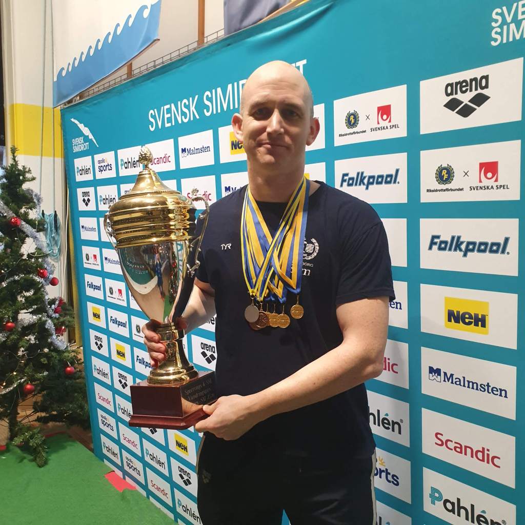 With all of this in mind, at the start of September I had a rough training plan and a goal for the year. I then had what was probably the worst run of training in my life. I would get two weeks or so of full training done, then something would happen. My daughter and wife caught Covid so the whole family had to isolate for a week. Next a heavy gym session plus a freak accident doing housework caused a rotator cuff injury, a kind I haven’t had before. It meant I couldn’t do much freestyle and had to focus on Breaststroke, Backstroke and kick for two weeks. It also meant a lot less upper body work in the gym and after the 2 weeks I had to reintroduce everything slowly. Unfortunately, the alternative gym work I did caused another injury. I thought I had simply injured my glutes, but after a few weeks it got so bad I had to see a physio who told me it was a bulging disk, probably the same one I injured earlier in the summer. The disk was hitting the sciatic nerve and meant that I couldn’t tumble turn in the pool and had to limit my gym work again. This happened in October but got progressively worse and was diagnosed (when it was really bad) in November about 3 weeks before the Swedish Masters and didn’t heal completely until early January (as in I could finally tumble turn for the whole session without pain). This of course also effected what I could and could not do in the gym. While I have gotten a lot of strength back, in terms of lifts I am still a good bit off what I was lifting around September and earlier in the year.