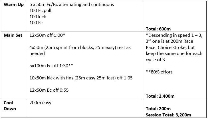 This the type of session I like to use mid-season especially around the Christmas holidays. The format is one that I like these days as it means a change every 500-600 meters or so. It keeps things interesting and stops it becoming a slog. The set also incorporates a little bit of speed and some backstroke to balance out my shoulders.